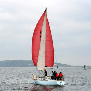 | 5月8日(日)の館山市主催「たてやま海まちフェスタ2005」ヨットの乗船体験に協力しました。 | ![]() |